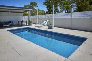 The Jurien pool is one of our most popular geometric pool designs. Its sleek and modern appearance makes it an ideal choice for newly developed properties or is a brilliant addition to an already established home. Armed to impress with an unobstructed swimming area, the Jurien pool is perfect for all of your entertaining and recreational needs. Perfect for the whole family or for couples simply wanting a relaxing space to enjoy during the summer months.